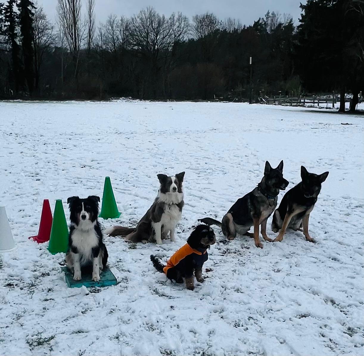 So haben 8 Trainer*innen bei tollem Wetter einen richtig schönen Obediencetag verbracht, mit gemischter Gruppenübung von Beginnern bis zu Klasse 3, Ablenkungstraining und gegenseitiger Hilfestellung.